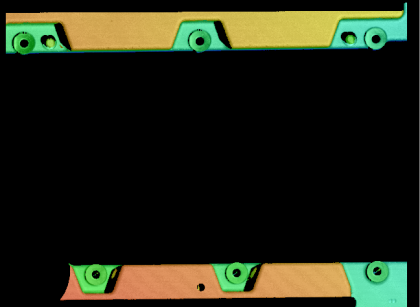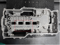 ·此方案成像效果较为完整,特征图像清晰,通过LVM3340相机可以准确测出压铸件凸台、圆柱平面度,动态重复精度在0.03mm以内,满足客户要求